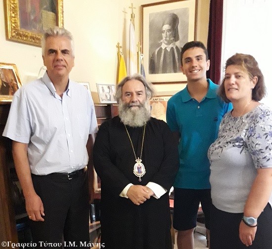 Ο Σεβ. Ποιμενάρχης μας κ. Χρυσόστομος Γ’ δέχθηκε το απόγευμα της Κυριακής στο Επισκοπείο εθιμοτυπική επίσκεψη του κ. Δημ. Σιδέρη, Δ/ντού ΚΕΠ Βούλας και της συζύγου του κας Σοφίας Σούμπαση καταγωγής από την Χαριά Μάνης, εκπαιδευτικού στα Εκπαιδευτήρια «Ελληνική Παιδεία» μετά του υιού τους Χαραλάμπους μαθητού Α’ Λυκείου.