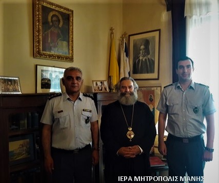 Το Σεβ. Μητροπολίτη Μάνης επισκέφτηκε σήμερα το πρωί στο Επισκοπείο Μάνης ο Αστυνομικός Διευθυντής Λακωνίας κ. Ηλίας Αξιοτόπουλος, συνοδευόμενος από τον Διοικητή του Α.Τ. Γυθείου σστυνόμο B΄ κ. Δημήτριο Κρητικό.