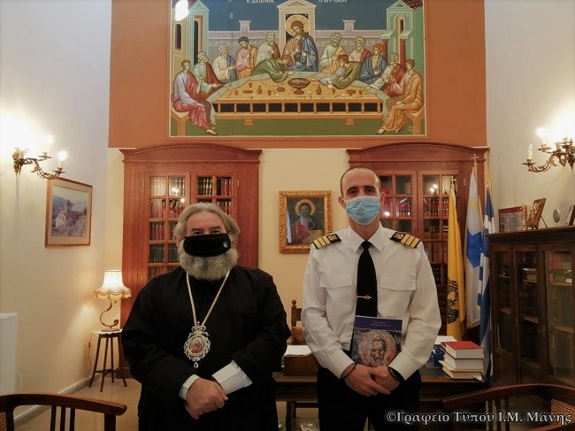 Σήμερα, Παρασκευή 18 Δεκεμβρίου 2020, επεσκέφθη τον Σεβ. Μητροπολίτη Μάνης κ. Χρυσόστομο Γ’, στο γραφείου του, εθιμοτυπικώς ο νέος Λιμενάρχης Γυθείου, Πλωτάρχης Λ.Σ. κ. Ευάγγελος Τσαλής, με την ευκαιρία της ανάληψης των καθηκόντων του, συνοδευόμενος από τον Υπολιμενάρχη Γυθείου, Υποπλοίαρχο Λ.Σ. κ. Σωτήριο Βουρλέτση.