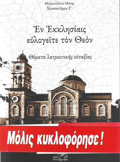 Κυκλοφόρησε από τις εκδόσεις «Επιστροφή» το νέο βιβλίο του Σεβ. Μητροπολίτου Μάνης κ. Χρυσοστόμου Γ’ με τίτλο «Ἐν Ἐκκλησίαις εὐλογεῖτε τόν Θεόν».