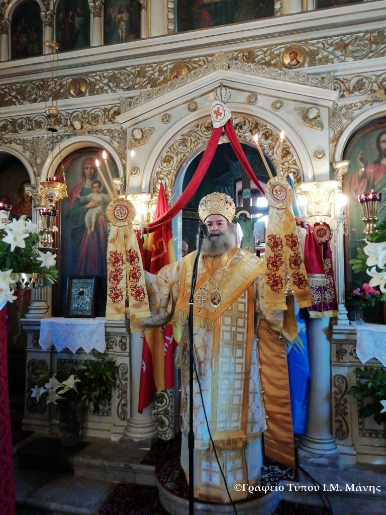 Την κυριώνυμο ημέρα ο Σεβ. ήταν συμπαραστατούμενος από τον αρχιμ. π. Νεκτάριο Βλαχόπουλο, τον πρωτοπρ. π. Ιωάννη Κουρεντζή και το διάκονο π. Χριστούδολο Κρουστάλη, ενώ παρέστησαν ο Πρόεδρος του Δημοτικού Συμβουλίου Δήμου Δυτ. Μάνης κ. Κισκήρας με μέλη του Δημοτικού Συμβουλίου.