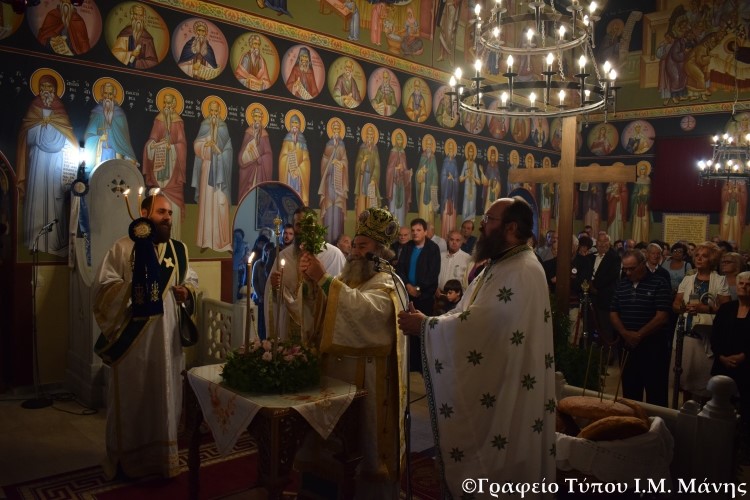 Την παραμονή της εορτής, Παρασκευή 13 Σεπτεμβρίου, τελέστηκε ο Πανηγυρικός Αρχιερατικός Εσπερινός χοροστατούντος του Σεπτού Ποιμενάρχου μας, ο οποίος στο κήρυγμά του ανέλυσε το βαθύτερο νόημα του Τιμίου Σταυρού. Προ της απολύσεως του Εσπερινού τελέστηκε η ακολουθία των Χαιρετισμών του Τιμίου Σταυρού. Το παρόν στην Ακολουθία μεταξύ άλλων έδωσε ο Δήμαρχος Δυτικής Μάνης κ. Γιαννημάρας.