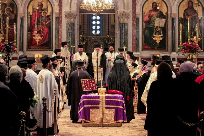 Της Εξοδίου Ακολουθίας προεξήρχε ο Μακ. Αρχιεπίσκοπος Αθηνών και πάσης Ελλάδος κ. Ιερώνυμος και πλειάς Αρχιερέων.
