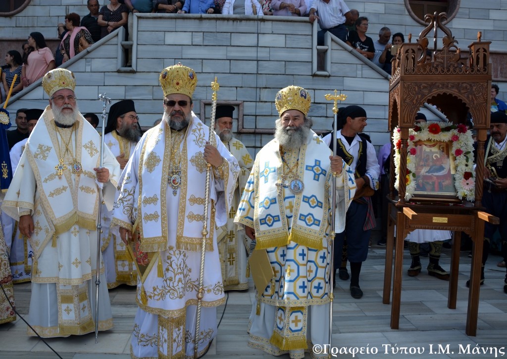 Την παραμονή της εορτής, Σάββατο 7 Σεπτεμβρίου 2019, στον Δισαρχιερατικό Εσπερινό χοροστάτησε ο Σεβ. Μητροπολίτης Ιλίου, Αχαρνών και Πετρουπόλεως κ. Αθηναγόρας, έλκων την καταγωγή του από την Μάνη, συγχοροστατούντος του Σεβ. Μητροπολίτου μας κ. Χρυσοστόμου Γ’, πλαισιωμένων από κληρικούς της Ιεράς Μητροπόλεώς μας, ως επίσης καί από τον διάκονο π. Ανδρέα Θεοδωράτο της Ι.Μητροπόλεως Πατρών. Κατά το κήρυγμά του, ο Σεβ. Μητροπολίτης κ. Αθηναγόρας, εξήγησε το όραμα του προφήτου Ιεζεκιήλ και ειδικότερα την σπουδαία φράση της Π. Διαθήκης: «ἡ πύλη αὕτη κεκλεισμένη ἔσται». Είπε ο Σεβ. ότι η προφητεία αυτή επαληθεύτηκε στο πρόσωπο της Παναγίας, διότι αυτή εγέννησε τον ενανθρωπήσαντα Υιόν και Λόγον του Θεού, τον Χριστόν, ο οποίος μας έσωσε από την αμαρτία, την πτώση μας και μας άνοιξε πάλιν τον δρόμον διά τον Παράδεισον. Διά της πύλης αυτής, της Παναγίας, διήλθεν ο Κύριος και πάλιν εσφραγισμένη κατέλιπεν. Και κατέληξε τονίζοντας ότι και μεις με τον χριστιανικό μας αγώνα διά πρεσβειών της Παναγίας μα θα βρούμε τον Παράδεισον εν ουρανοίς. Είναι η Παναγία μας η θεία είσοδος των σωζομένων.