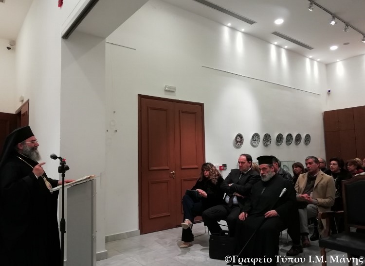 Στην αίθουσα του Κέντρου Πολιτισμού Δήμου Ανατολικής Μάνης, προσκληθείς ο Σεβ. Ποιμενάρχης μας από τον Δικηγορικό Σύλλογο Γυθείου και μετά τον χαιρετισμό της προέδρου κας Ανθής Μπαλιτσάρη, μίλησε το Σάββατο 23 τρ. μηνός, με θέμα ''Κράτος και Εκκλησία''.