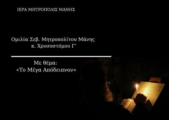 «Το Μέγα Απόδειπνον» - Ομιλία του Σεβ. Μητροπολίτου Μάνης κ. Χρυσοστόμου Γ'