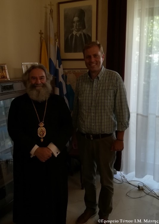 Επίσης, ο Σεβ. δέχθηκε και τον κ. Μαρίνο Κρανιώτη, Σύμβουλο Ασφαλείας Λιμένων και συνεζήτησε μαζί του ζητήματα που αφορούν την ναυσιπλοΐα και τον λιμένα του Γυθείου, αλλά και άλλα θέματα χριστιανικού περιεχομένου.