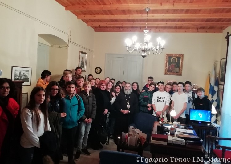 Χθές, Παρασκευή 14 Δεκεμβρίου 2018, ο Σεβ. Μητροπολίτης Μάνης κ. Χρυσόστομος Γ', εδέχθη με ιδιαίτερη χαρά μαθητές/τριες και συνοδούς καθηγητές από το Γυμνάσιο της Καρδαμύλης του Δήμου Δυτικής Μάνης, στο Επισκοπείο Μάνης, στο Γύθειο.
