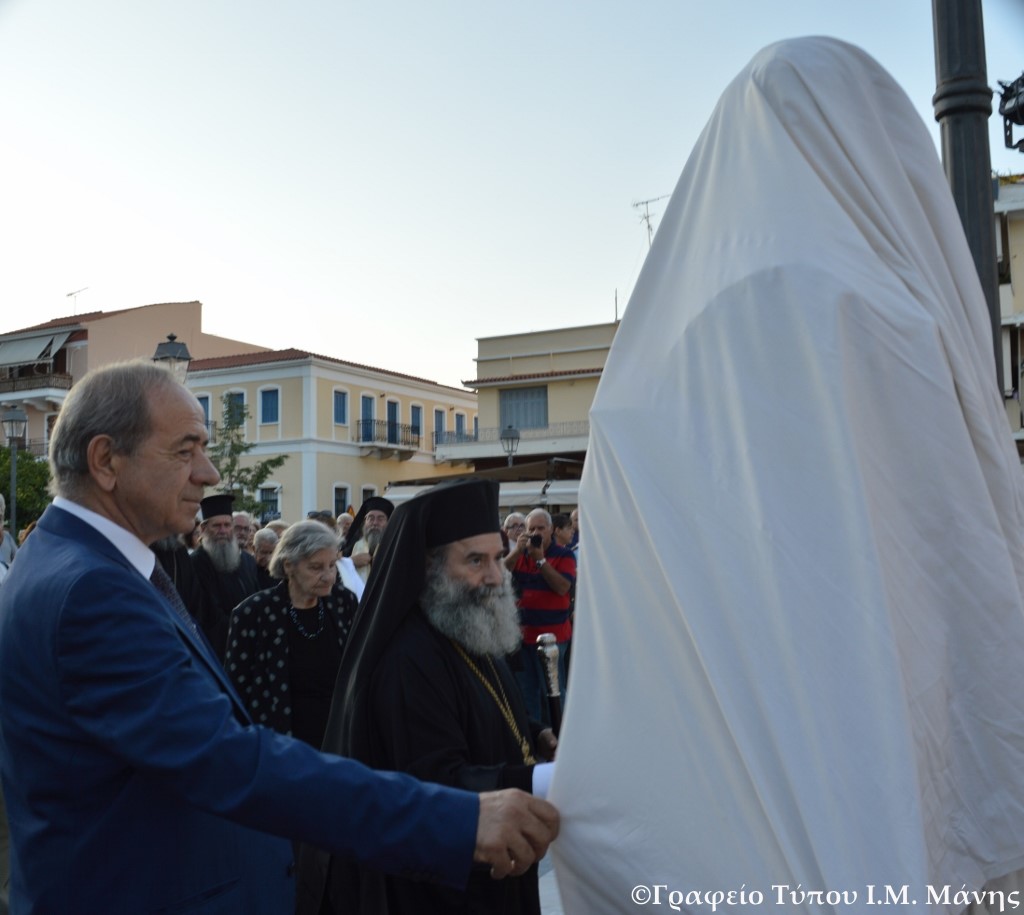 Ο Σεβ. Μητροπολίτης Μάνης στα αποκαλυπτήρια των προτομών του Γιάννη Ρίτσου και του Νικηφόρου Βρεττάκου στο Γύθειο