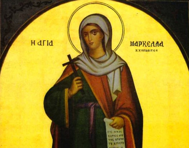 Ἡ Ἁγία Μαρκέλλα εἶναι μία μεγάλη μάρτυς τῆς Ἐκκλησίας μας. Νεαρὴ θυγατέρα ἑνὸς εἰδωλολάτρου σκληροῦ πατέρα, ἔζησε τὸν 14ο αἰώνα στὴ Χίο καὶ ἁγίασε μὲ τὸ ὄντως θαυμαστὸ μαρτύριό της.