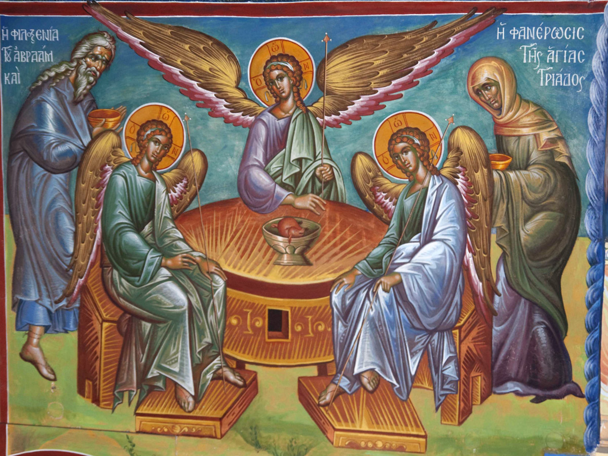 Ἐν τῷ Θεῷ ὑπάρχουν τρία πρόσωπα ἤ ὑποστάσεις, διακρινόμενα ἀπ’ ἀλλήλων. Ὁ Πατήρ, ὁ Υἱός καί τό Ἅγιον Πνεῦμα. Κάθε πρόσωπο τῆς Ἁγίας Τριάδος ἔχει ἴδιον ὑποστατικό ἰδίωμα ἤτοι: Ὁ Πατήρ τήν ἀγεννησία, ὁ Υἱός τήν γέννηση καί τό Ἅγ. Πνεῦμα τήν ἐκπόρευση. Καί τά τρία πρόσωπα << ἐν τῇ μιᾷ θεότητι>> συνυπάρχουν, ἐνυπάρχουν καί περιχωροῦν ἐν ἀλλήλοις. Ὡς λέγει ὁ Ἱ. Δαμασκηνός ἔχουμε μία θεότητα << ἐν τρισί τελείαις ὑποστάσεσιν ἀσυγχύτως ἡνωμέναις καί ἀδιαστάτως διαιρουμέναις>>. Πρόκειται γιά τό ἱερότατο μυστήριο τῆς Ἁγίας Τριάδος .